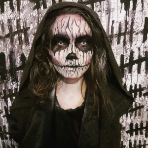 Wiedźma / witch – np. zielona skóra, mocne czarne linie przy oczach, dzikie brwi.